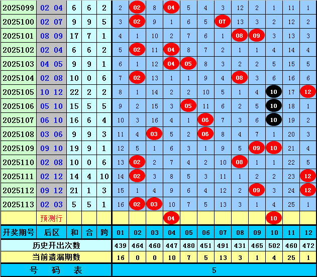后分别析:上期后区开出全小组合:02+03,最近10期后区奖号大小比为11:9,本期后区贯注一大一小组合回补,温煦两码04、10。