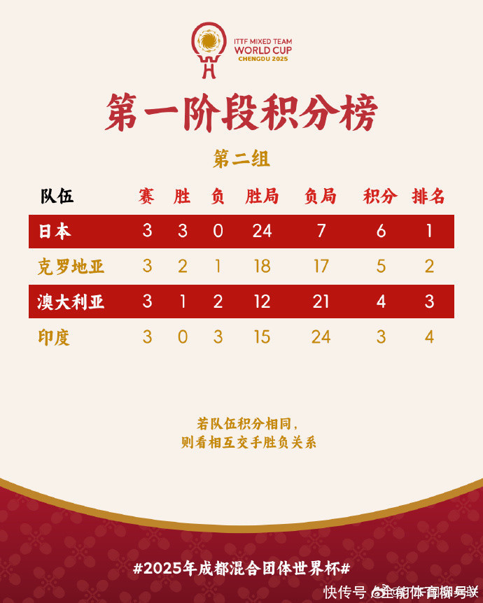 来到2025年搀和团体寰宇杯,日本队派出主力出战,小组轮回赛以3连胜晋级八强。本次比赛,中国香港队与卫冕冠军中国队分在A组,第一轮他们就与卫冕冠军相遇。